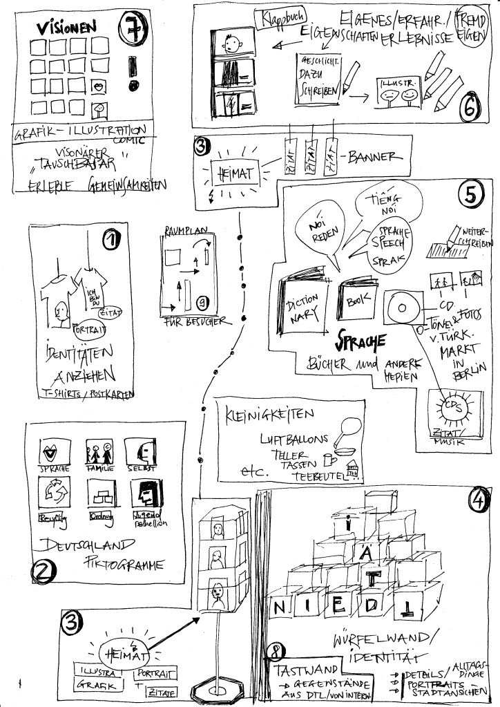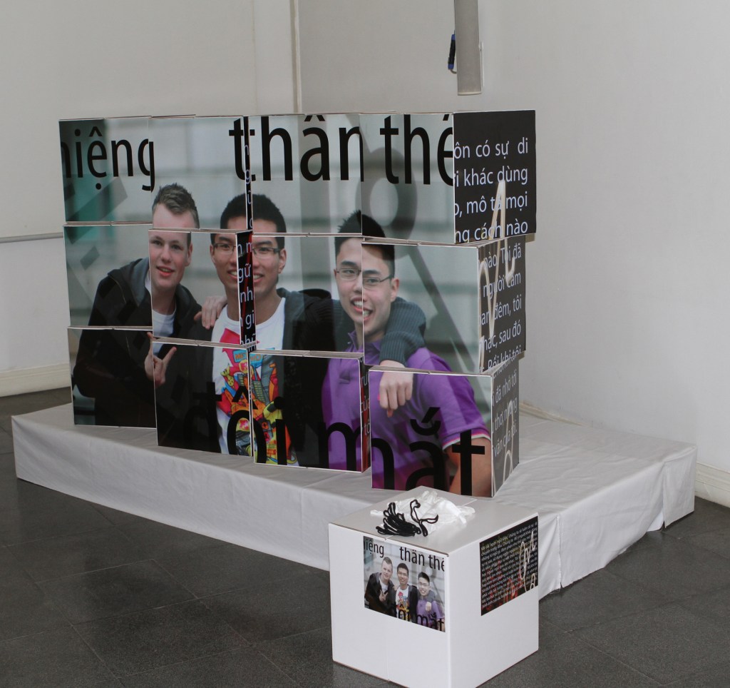 Im Rahmen des Austellungskonzepts wurden Interviews mit in Deutschland lebenden Menschen geführt, die sich mit ihrer kulturellen Identität in „mehreren Welten“ verorten. Daraus entwickelten wir mit vier weiteren Künstler*innen Ausstellungsobjekte für unseren „Deutschland Shop –Filiale Vietnam.“